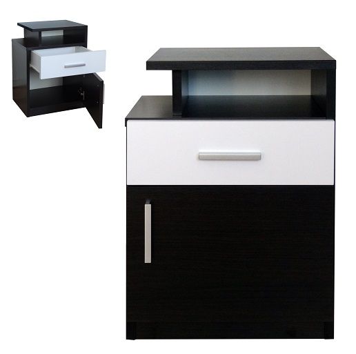 Szafka nocna prawa wykonana jest z płyty laminowanej o grubości 18mm. Obrzeża oklejane są okleiną PCV.