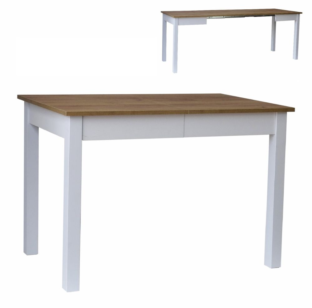 Funkcjonalny stół rozsuwany o wymiarach blatu 70cm x 120cm z trzema wkładkami (3x50cm). Do rozsuwania blatu zastosowane są solidne metalowe prowadnice z metalowymi nogami podporowymi chowanymi pod blatem. Blat o grubości 18mm, oklejony okleiną PCV.