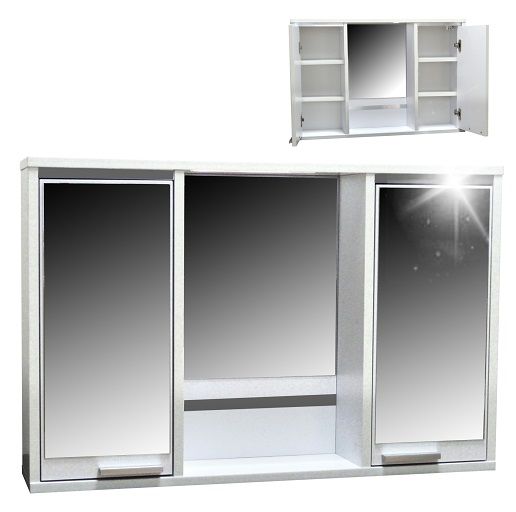 Szafka łazienkowa wisząca z lustrem. Brzegi szyby szlifowane i naklejane na płytę laminowaną o grubości 18mm. Obrzeża oklejane są okleiną PCV.