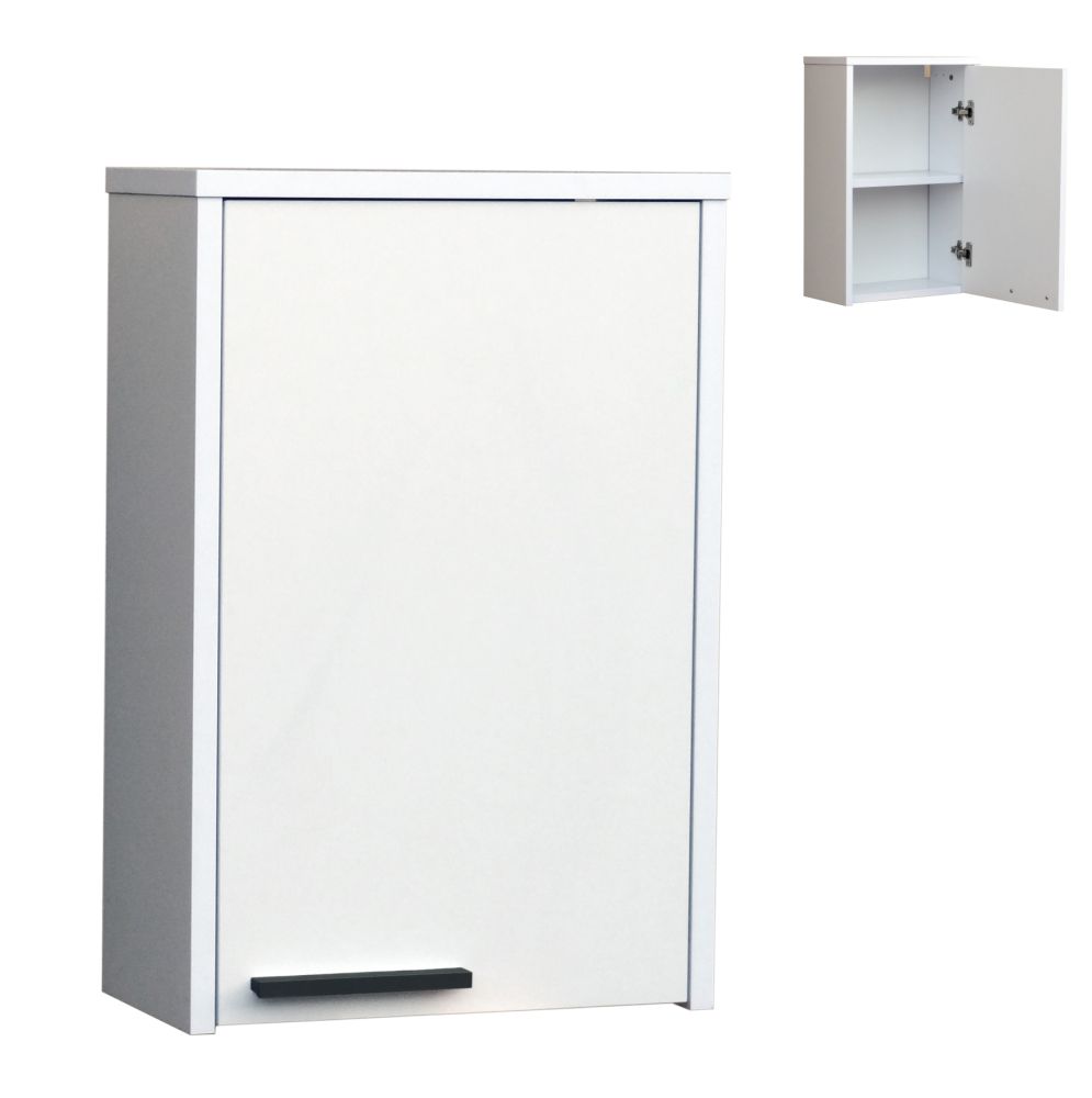 Szafka łazienkowa wisząca. Wykonana z płyty laminowanej o grubości 18mm. Obrzeża oklejane są okleiną PCV.