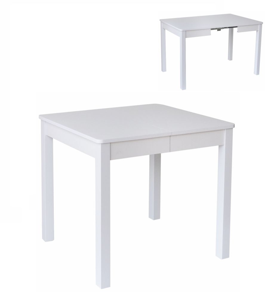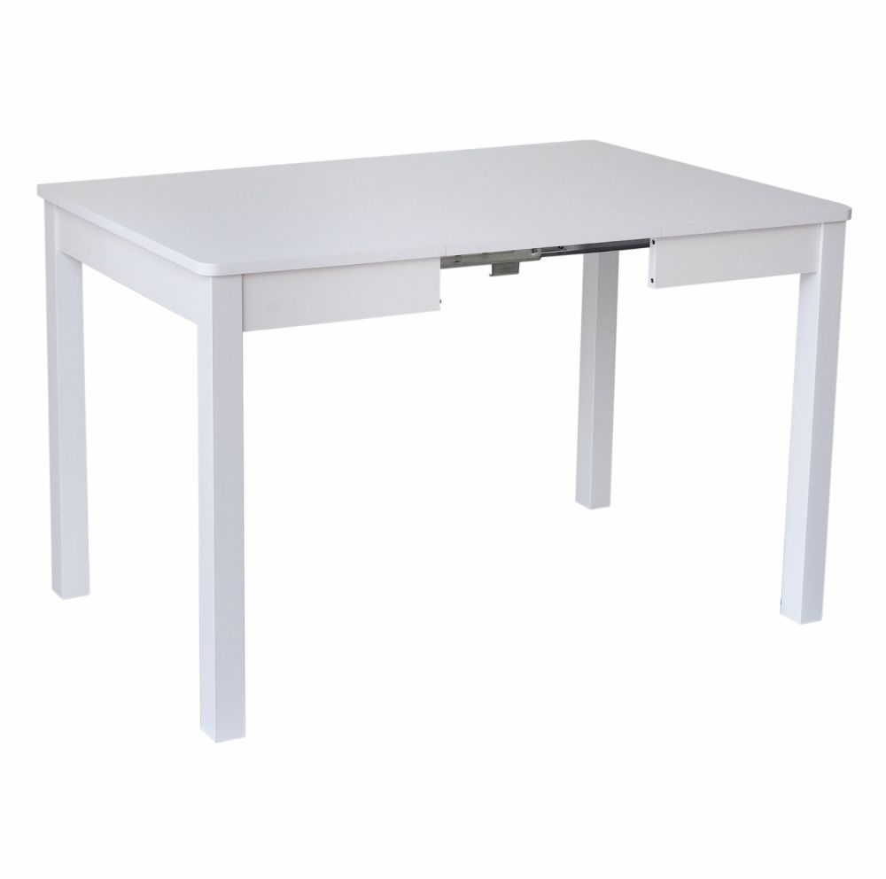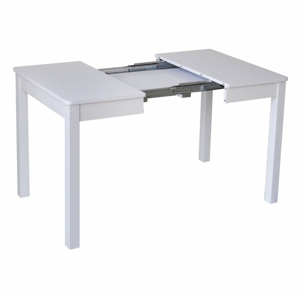 Stół rozkładany z jedną wkładką (40cm). Do rozsuwania blatu zastosowane są solidne metalowe prowadnice. Blat zaowalony o grubości 18mm, oklejony okleiną PCV.
