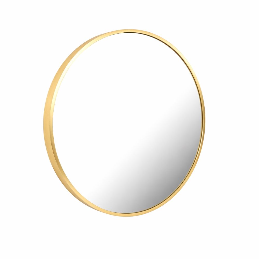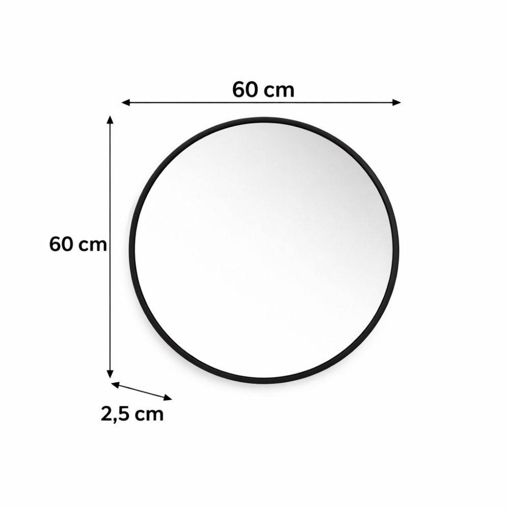 Okrągłe lustro wiszące o średnicy 60cm w masywnej metalowej ramie o grubości 2,5cm . Rama lustra dostępna w dwóch kolorach: Czarnym lub Złotym.