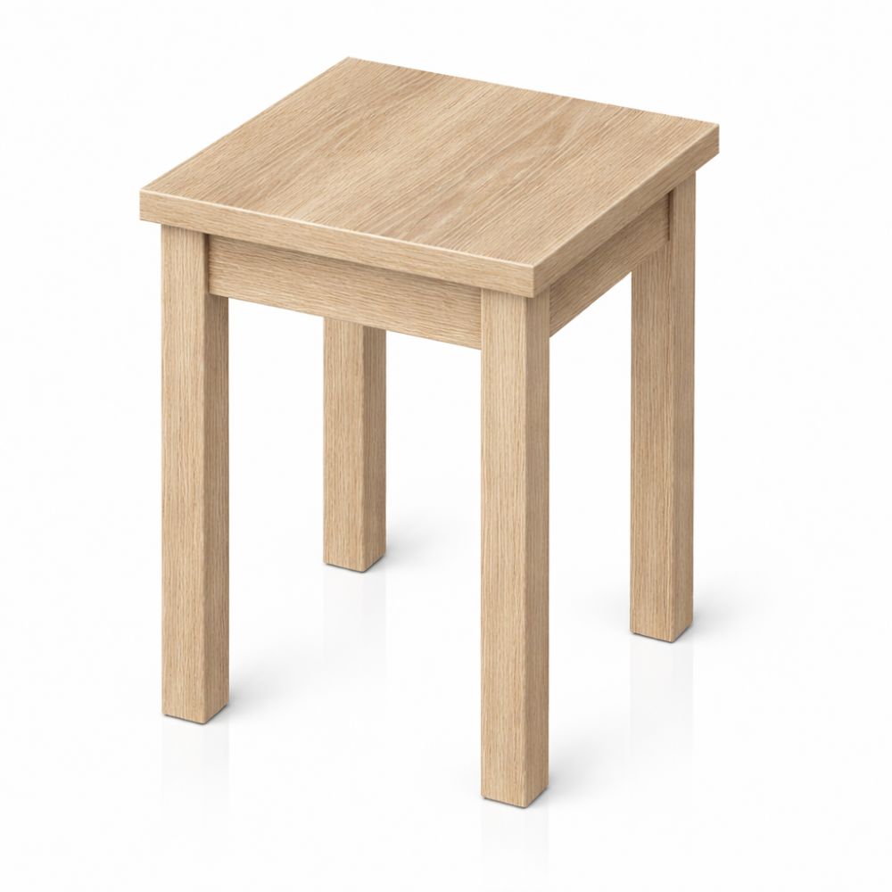 Taboret wykonany z płyty laminowanej 18mm. Blat oklejony okleiną PCV. Nogi wykonane z drewna.
