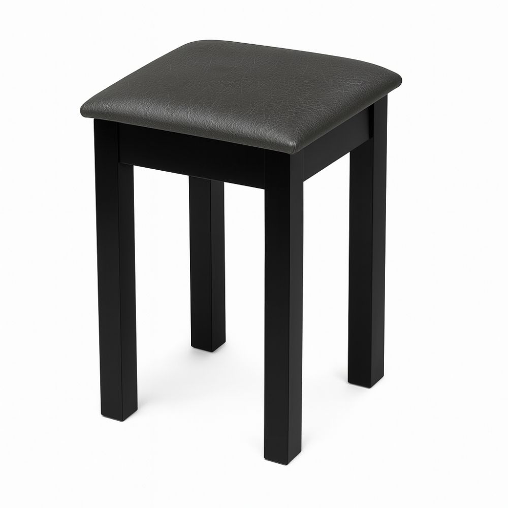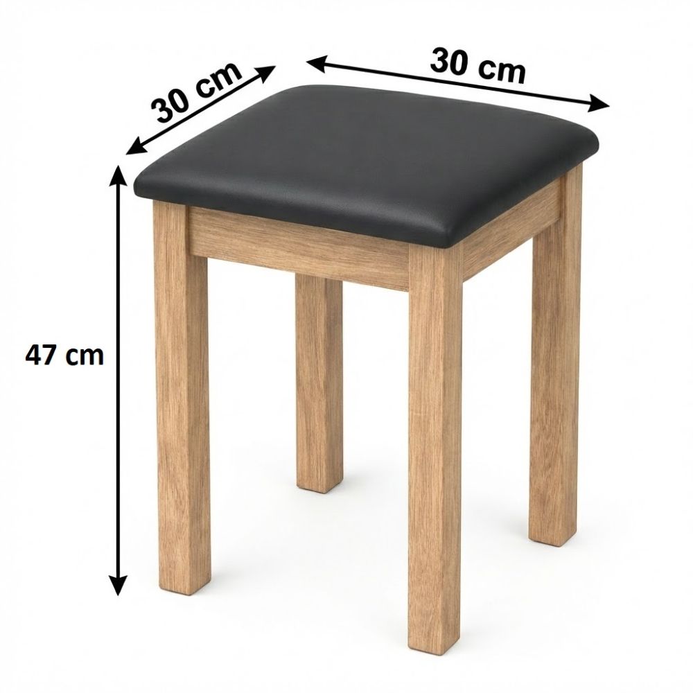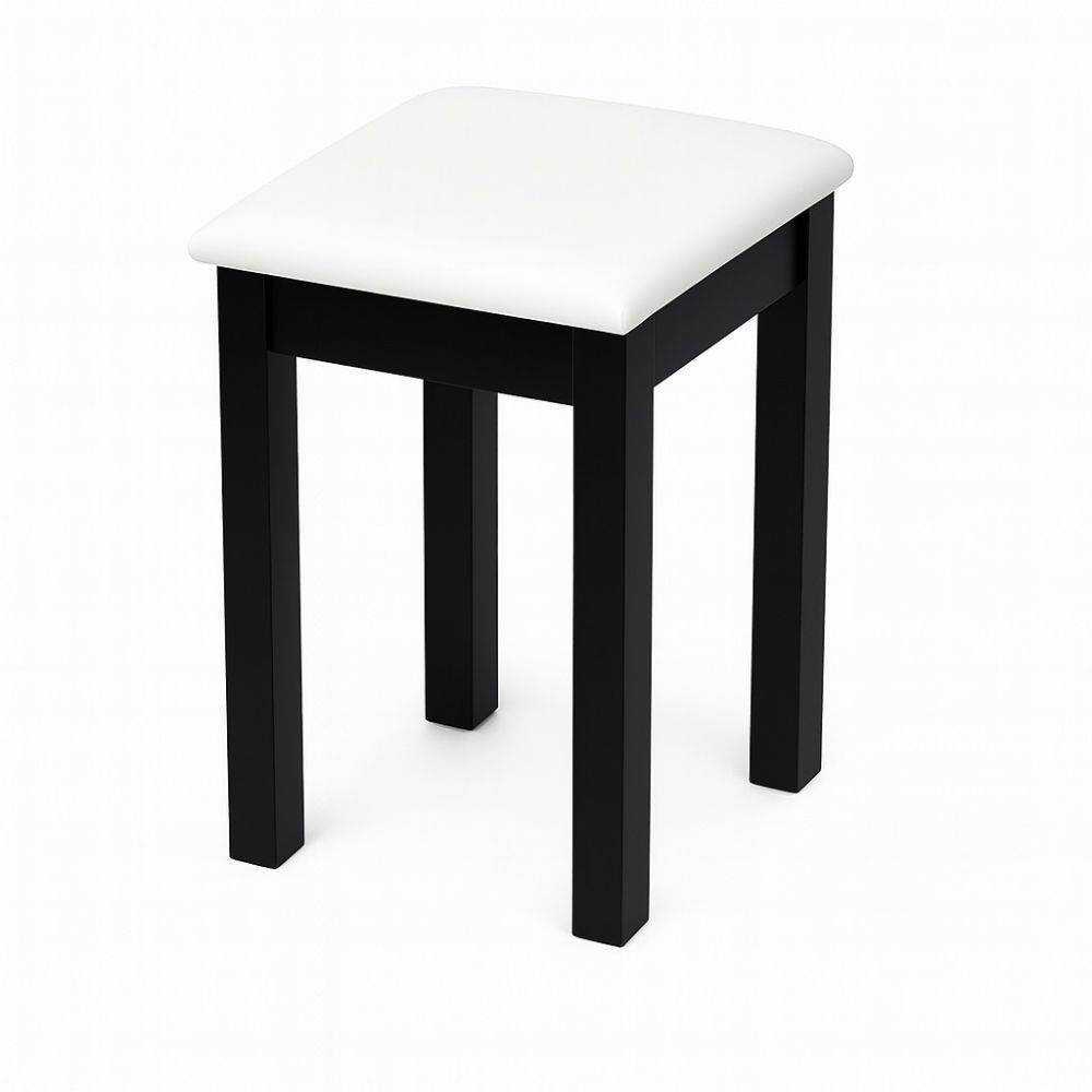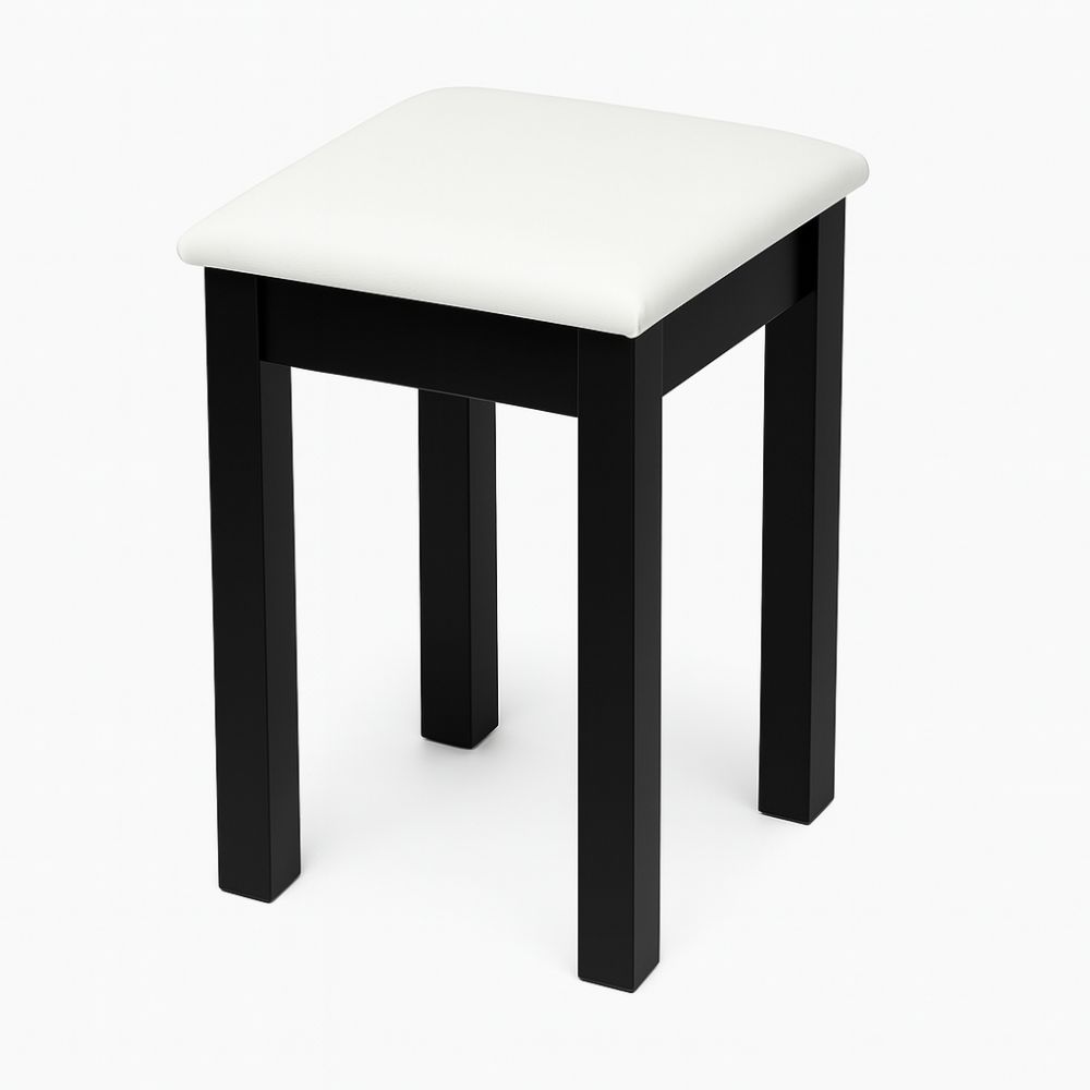 Taboret wykonany z drewna z tapicerowanym siedziskiem.