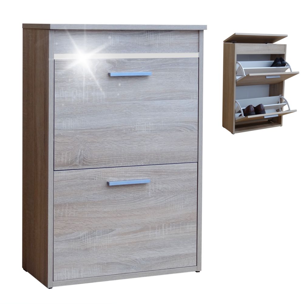 Szafka na buty wykonana jest z płyty laminowanej o grubości 18mm. Obrzeża oklejane są okleiną PCV. Do wyboru trzy modele
