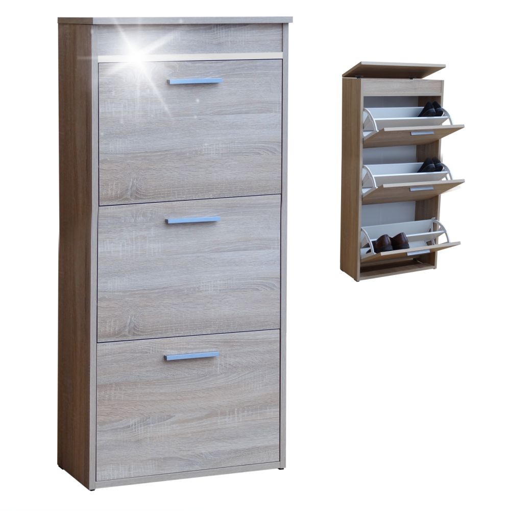 Szafka na buty wykonana jest z płyty laminowanej o grubości 18mm. Obrzeża oklejane są okleiną PCV.Do wyboru trzy modele