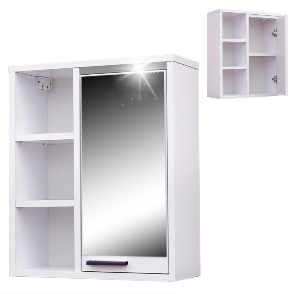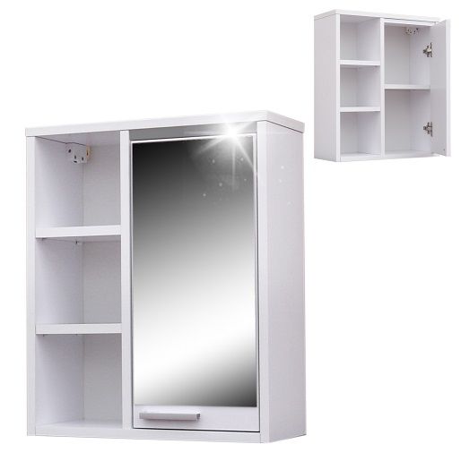 Szafka łazienkowa wisząca z lustrem. Brzegi szyby szlifowane i naklejane na płytę laminowaną o grubości 18mm. Obrzeża oklejane są okleiną PCV.