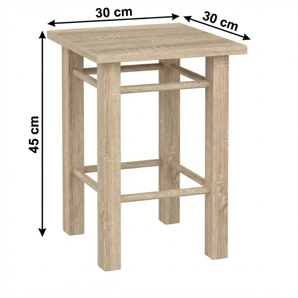 Taboret wykonany z płyty laminowanej 18mm. Blat oklejony okleiną PCV. Nogi wykonane z drewna.